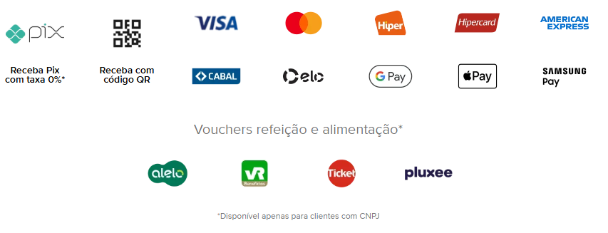 Taxas iguais para todas as bandeiras de cartão e parcelamento em até 12x.